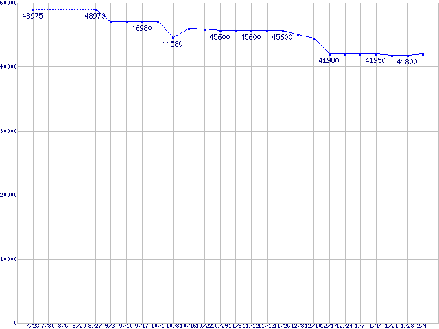 | HDD 160〜200GB未満の最安値推移 |