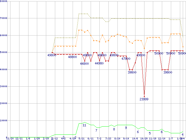 | 2.5インチ ローエンドSSD 256GB (256GB,MLC)の価格推移 |