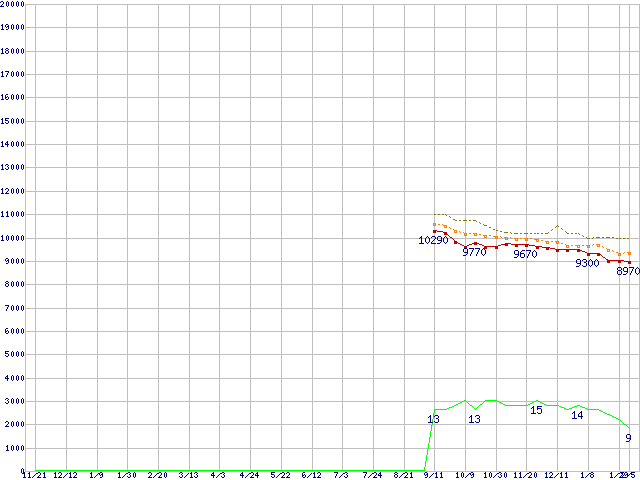 | Athlon II X4 620 (2.6GHz,L2 512KB×4,TDP 95W)の価格推移 |
