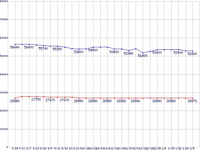 | LGA1366 (QPI 4.8GT/s,L3キャッシュ8MB,Quad Core,Hyper-Threading,TDP 130W)の最安値推移 |
