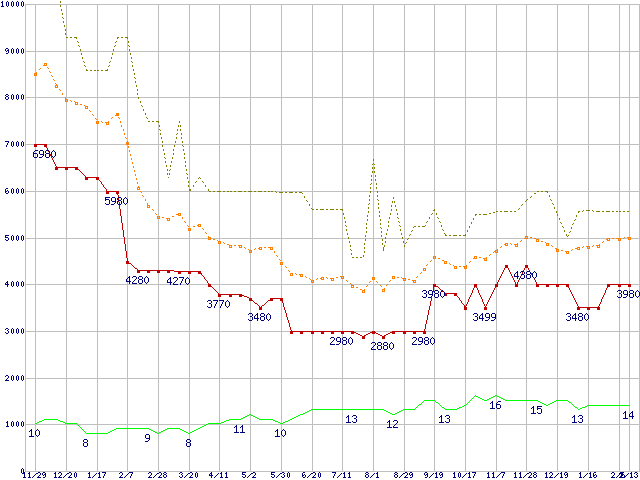 | PC3-10600 1GB×2枚組みセットの価格推移 |