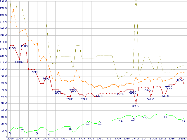 | PC3-10600 2GB×2枚組みセットの価格推移 |
