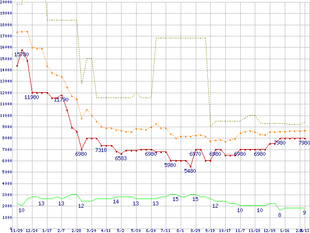 | PC3-12800 1GB×3枚組みセットの価格推移 |