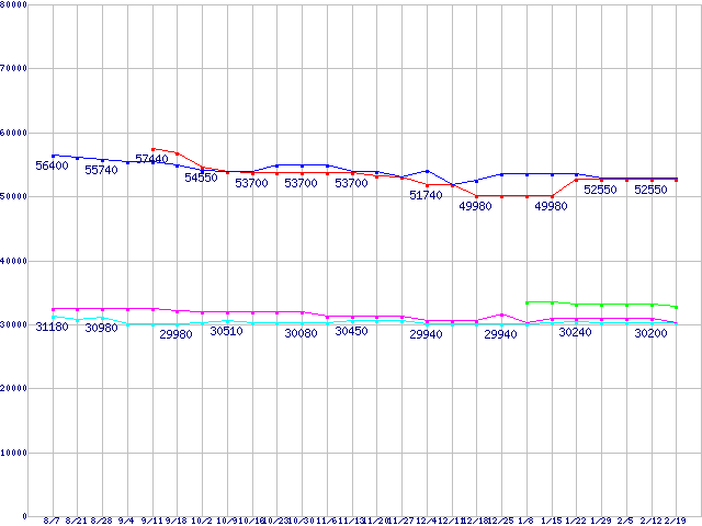 | CPU主要製品(最安値3万円〜6万円未満)の最安値推移 |