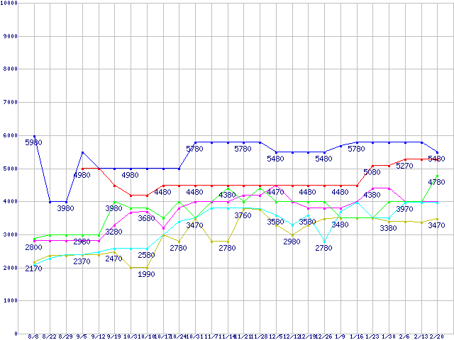 | ※製品名をクリックすると個別のグラフを表示します ※点線部は販売店が確認できなかった、または調査データがないことを示します | |
