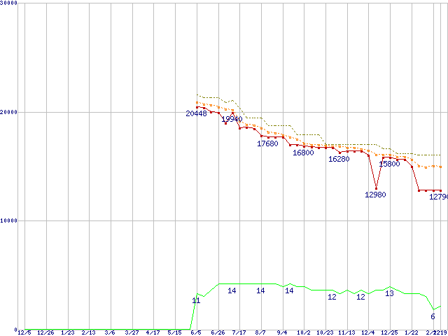| Phenom II X4 905e (2.5GHz,L2 512KB×4,L3 6MB,TDP 65W)の価格推移 |
