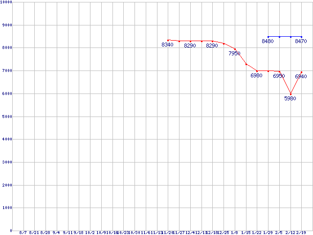 | ※製品名をクリックすると個別のグラフを表示します ※点線部は販売店が確認できなかった、または調査データがないことを示します |