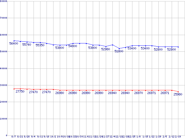 | ※製品名をクリックすると個別のグラフを表示します ※点線部は販売店が確認できなかった、または調査データがないことを示します |