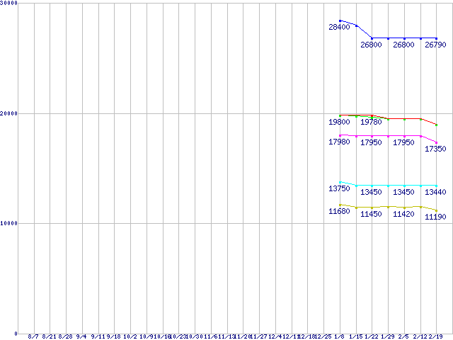 | ※製品名をクリックすると個別のグラフを表示します ※点線部は販売店が確認できなかった、または調査データがないことを示します | |