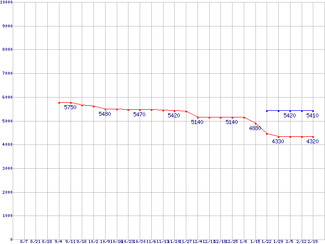 | LGA775 (FSB 800MHz,L2 1MB,Dual Core,TDP 65W)の最安値推移 |