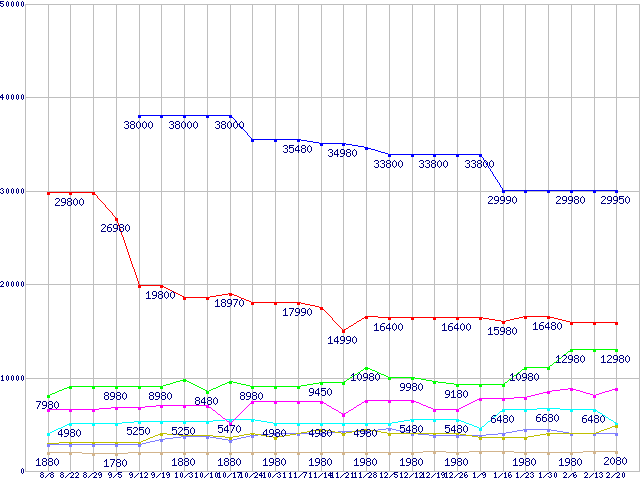 | ※製品名をクリックすると個別のグラフを表示します ※点線部は販売店が確認できなかった、または調査データがないことを示します | |