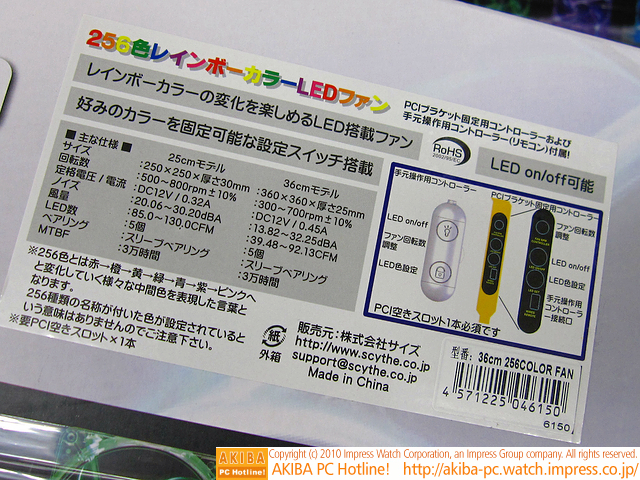 ![]() | AKIBA PC Hotline! 2010年2月20日号 36cmの大型発光ファンが発売に 今週見つけた新製品:ファン/冷却関連製品 Xclio 8cm 256COLOR FAN Xclio 12cm 256COLOR FAN Xclio 25cm 256COLOR FAN Xclio 36cm 256COLOR FAN |