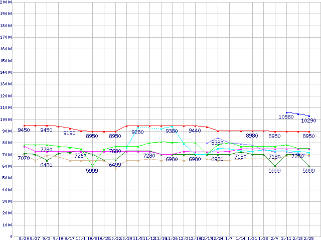 | ※製品名をクリックすると個別のグラフを表示します ※点線部は販売店が確認できなかった、または調査データがないことを示します | |