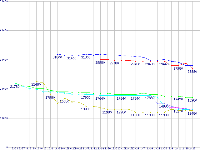 | ※製品名をクリックすると個別のグラフを表示します ※点線部は販売店が確認できなかった、または調査データがないことを示します | |