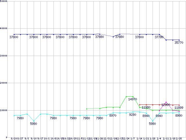 | ※製品名をクリックすると個別のグラフを表示します ※点線部は販売店が確認できなかった、または調査データがないことを示します | |