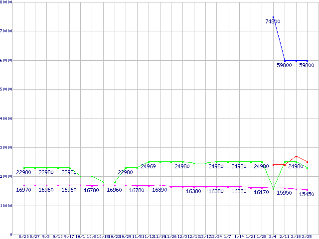 | ※製品名をクリックすると個別のグラフを表示します ※点線部は販売店が確認できなかった、または調査データがないことを示します | |