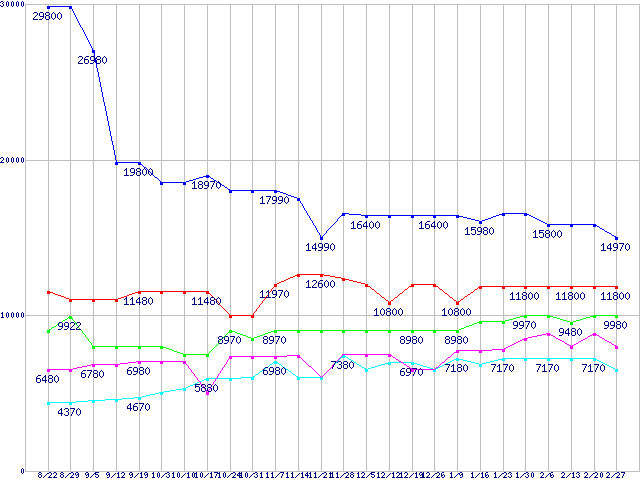 | ※製品名をクリックすると個別のグラフを表示します ※点線部は販売店が確認できなかった、または調査データがないことを示します | |