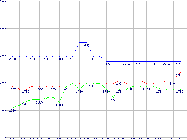 | ※製品名をクリックすると個別のグラフを表示します ※点線部は販売店が確認できなかった、または調査データがないことを示します | |