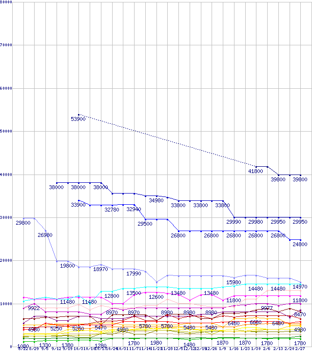 ※点線部は販売店が確認できなかった、または調査データがないことを示します