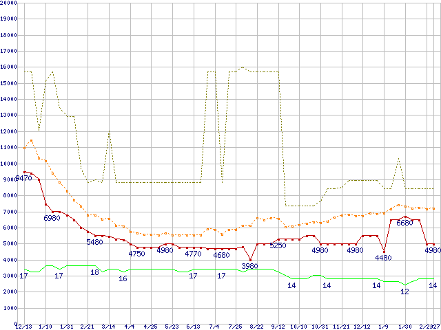 | PC3-10600 1GB×3枚組みセットの価格推移 |