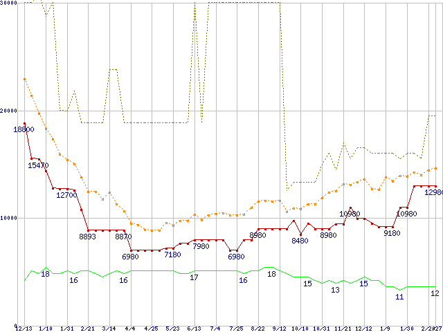 | PC3-10600 2GB×3枚組みセットの価格推移 |