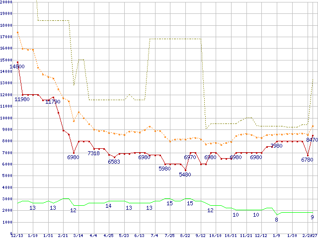 | PC3-12800 1GB×3枚組みセットの価格推移 |