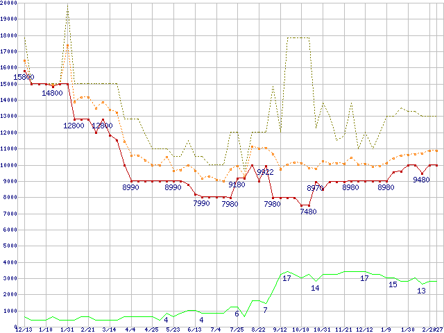 | PC3-12800 2GB×2枚組みセットの価格推移 |
