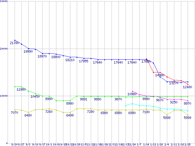 | ※製品名をクリックすると個別のグラフを表示します ※点線部は販売店が確認できなかった、または調査データがないことを示します | |