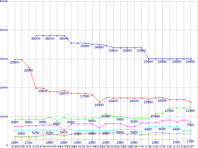 | ※製品名をクリックすると個別のグラフを表示します ※点線部は販売店が確認できなかった、または調査データがないことを示します | |