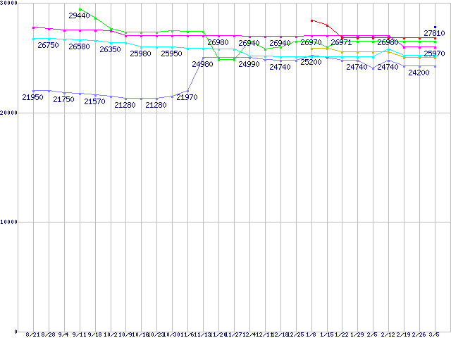 | CPU主要製品(最安値2万円〜3万円未満)の最安値推移 |