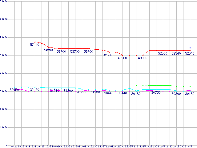 | CPU主要製品(最安値3万円〜6万円未満)の最安値推移 |