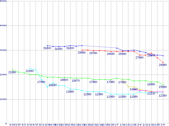 | ※製品名をクリックすると個別のグラフを表示します ※点線部は販売店が確認できなかった、または調査データがないことを示します | |