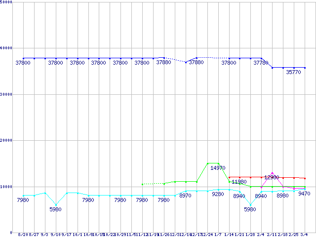 | ※製品名をクリックすると個別のグラフを表示します ※点線部は販売店が確認できなかった、または調査データがないことを示します | |