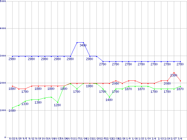 | ※製品名をクリックすると個別のグラフを表示します ※点線部は販売店が確認できなかった、または調査データがないことを示します | |