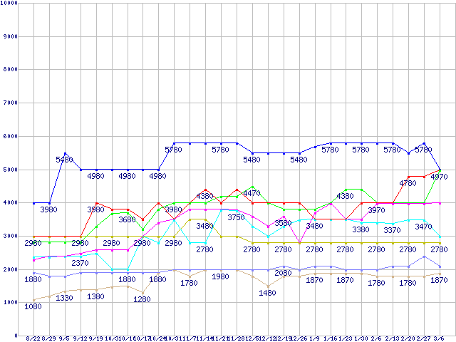| ※製品名をクリックすると個別のグラフを表示します ※点線部は販売店が確認できなかった、または調査データがないことを示します | |