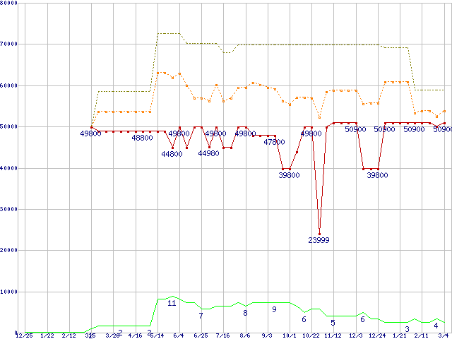 | 2.5インチ ローエンドSSD 256GB (256GB,MLC)の価格推移 |