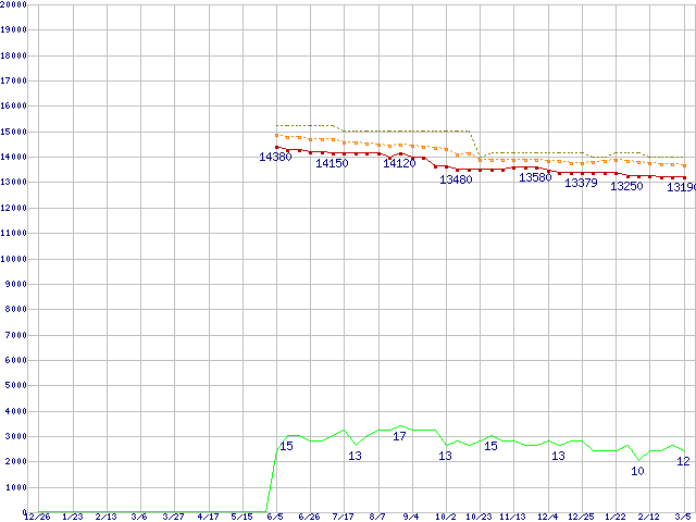 Core 2 Duo E7600 (3.06GHz,L2 3MB)の価格推移↑前グラフ↓次グラフ(2008年12月26日〜2010年3月5日)※このグラフは過去のデータも税率5%相当に調整した税込み相当額のグラフです。●関連グラフCPU主要製品の最安値推移CPU主要製品(最安値1万円〜2万円未満)の最安値推移Intel系CPUの最安値推移LGA775 (FSB 1066MHz,Dual Core,TDP 65W)の最安値推移●凡例最安値(点線部は販売店未確認または未調査)平均値最高値ショップ数