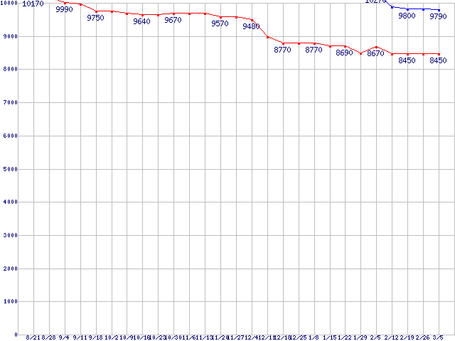 | Socket AM3 (HyperTransport 3.0,Dual Core,L3 6MB,TDP 80W)の最安値推移 |