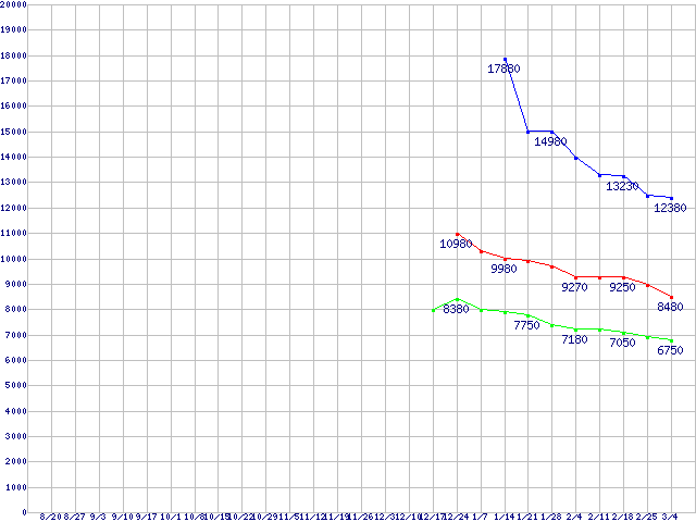| WD Caviar Green (3Gb/s)の最安値推移 |