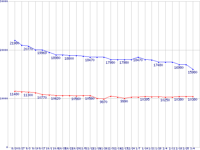 | Barracuda LP (5900rpm,3Gb/s)の最安値推移 |