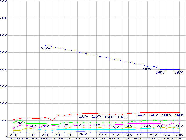 | ※製品名をクリックすると個別のグラフを表示します ※点線部は販売店が確認できなかった、または調査データがないことを示します | |