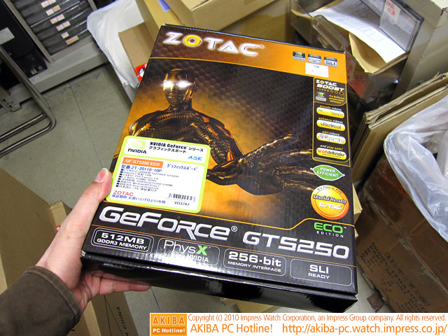 AKIBA PC Hotline! 2010年3月6日号今週見つけた新製品:ビデオカード ZOTAC GeForce GTS 250 Eco 512MB(ZT-20110-10P)前の画像←[記事に戻る]