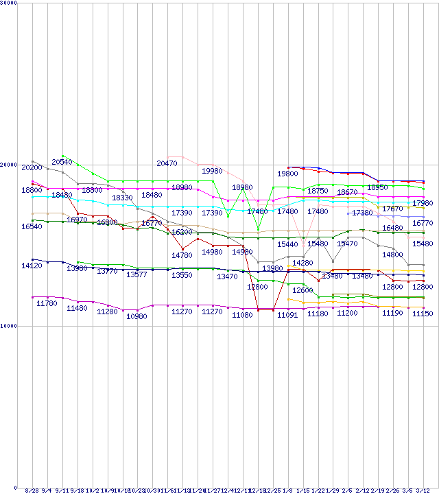 | CPU主要製品(最安値1万円〜2万円未満)の最安値推移 |