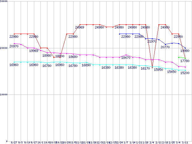 | ※製品名をクリックすると個別のグラフを表示します ※点線部は販売店が確認できなかった、または調査データがないことを示します | |