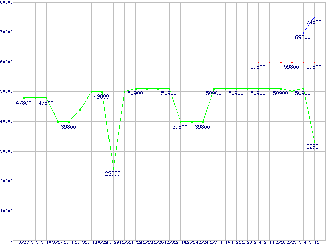 | ※製品名をクリックすると個別のグラフを表示します ※点線部は販売店が確認できなかった、または調査データがないことを示します | |