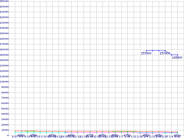 | HDD 500〜600GB未満の最安値推移 |