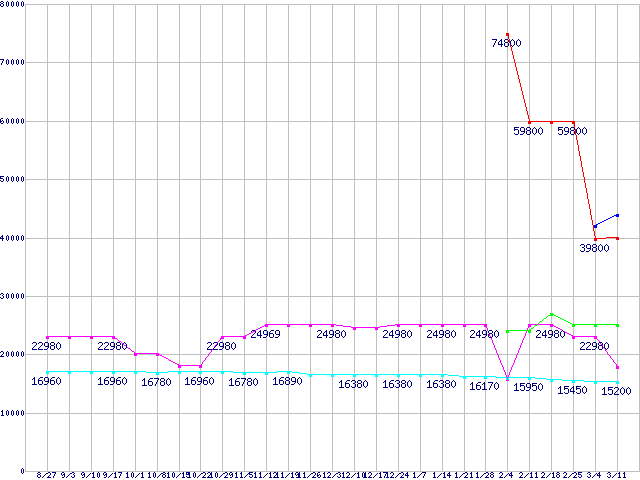 | ※製品名をクリックすると個別のグラフを表示します ※点線部は販売店が確認できなかった、または調査データがないことを示します | |