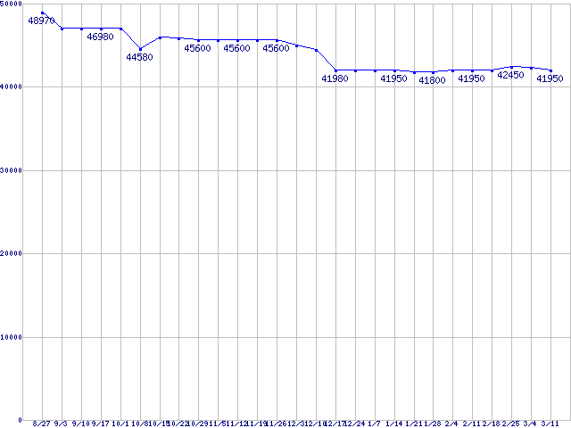 | HDD 160〜200GB未満の最安値推移 |