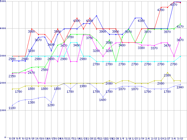 | ※製品名をクリックすると個別のグラフを表示します ※点線部は販売店が確認できなかった、または調査データがないことを示します | |