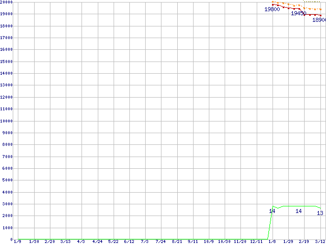 Core i5-660 (3.33GHz)の価格推移↑前グラフ↓次グラフ(2009年1月9日〜2010年3月12日)※このグラフは過去のデータも税率5%相当に調整した税込み相当額のグラフです。 税率変更や、総額表示方式導入(2004年4月)の影響は除いています。●関連グラフCPU主要製品の最安値推移CPU主要製品(最安値1万円〜2万円未満)の最安値推移Intel系CPUの最安値推移LGA1156 (L3キャッシュ4MB,Dual Core,GPU内蔵,Hyper-Threading,TDP 73〜87W)の最安値推移●凡例最安値(点線部は販売店未確認または未調査)平均値最高値ショップ数